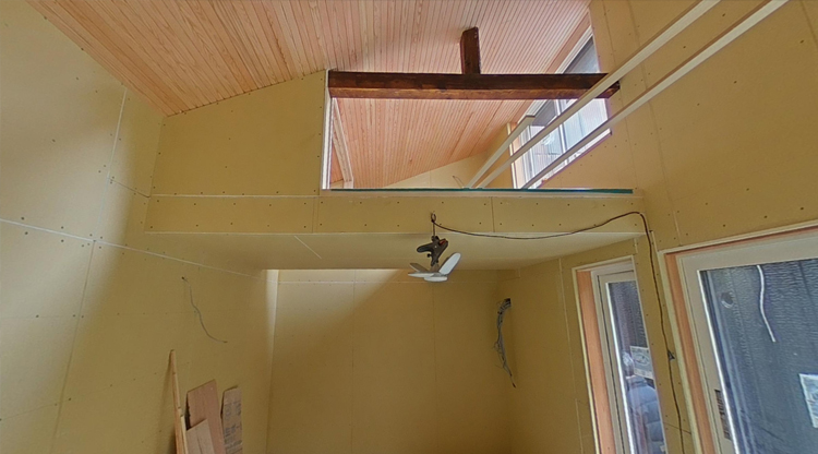 オフィスとしての使用を想定した離れは、吹き抜けとロフトを設けました。京町家とは思えない明るさを、奥まった位置でも実現しています。